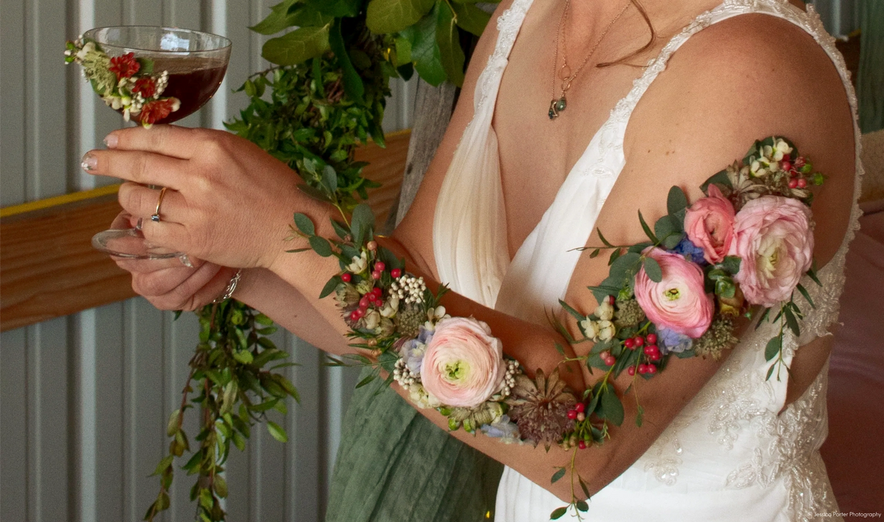 Be adventurous: my specialty is often adding floral touches in unique and interconnected ways, like using homegrown blooms from loved one's garden, to expressive floral body art, and even rose petals drops from an airplane to shower guests! It's more than flowers, it's an interconnection between people and their surroundings.